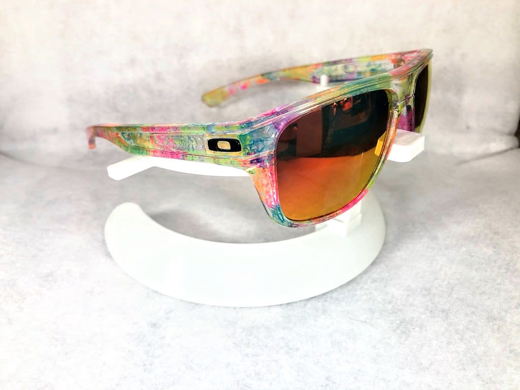 Combine styles and colors to create your own custom look - fades, drips, splatters, confetti, marbles, linears, all done in your choice pof paint - neon, metallics, colorshift, holographic, candy clears, and more. Contact us with your ideas and we will work with you to create a one-of-a-kind pair of custom sunglasses.
